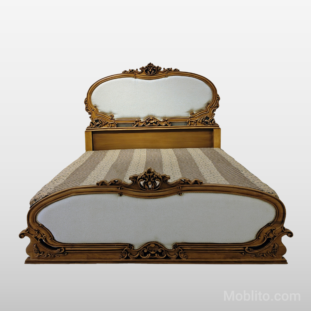 تخت خواب منبتی زمرد | تخت خواب کلاسیک با منبتکاری ظریف و چوب راش سوپر