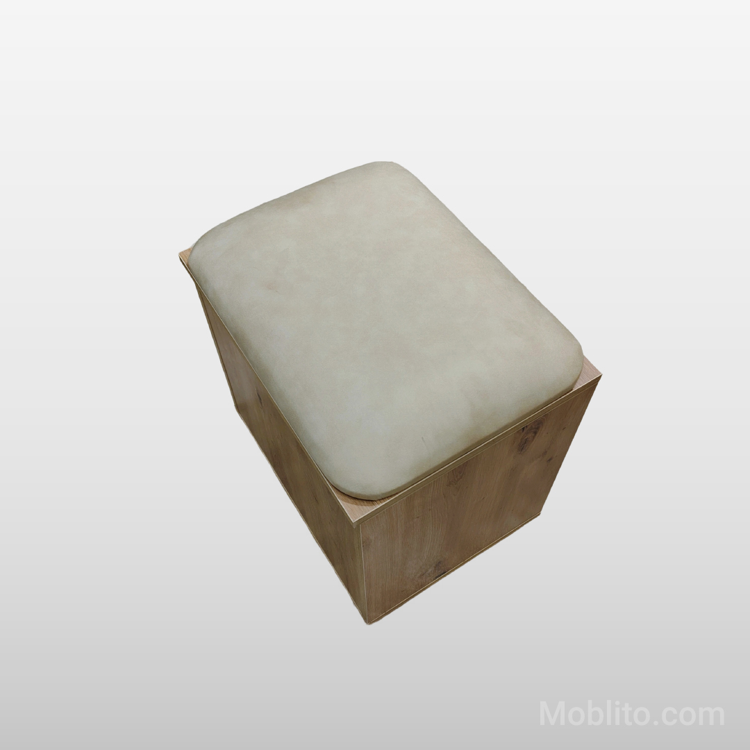 - صندلی: مکعب مستطیل با کفی پارچهای و اسفنجی. درب صندلی با لولا باز میشود و فضای داخلی آن قابل استفاده است.