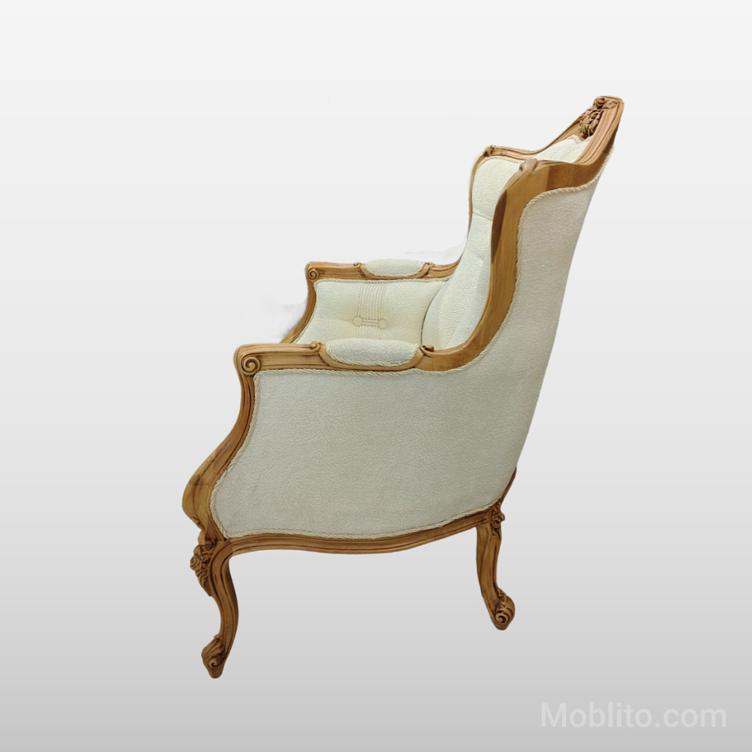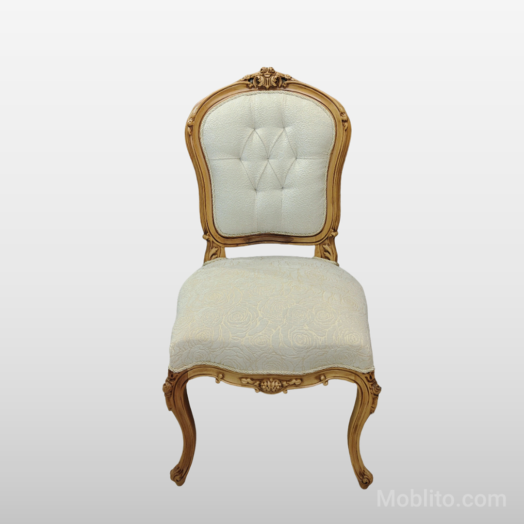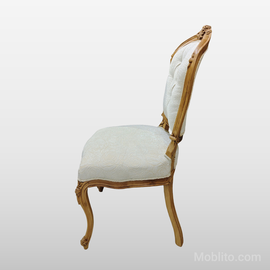 رنگ چوب این مبلمان بادامی لایت و روشن است؛ رنگی که در سالهای اخیر به یکی از محبوبترین رنگها در سبک نئوکلاسیک تبدیل شده است. این رنگ چند ویژگی مهم دارد: