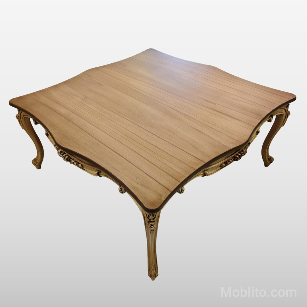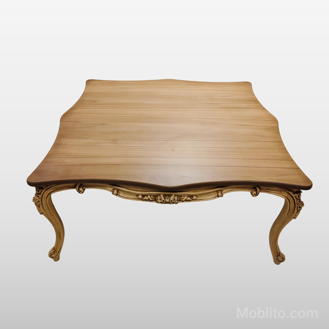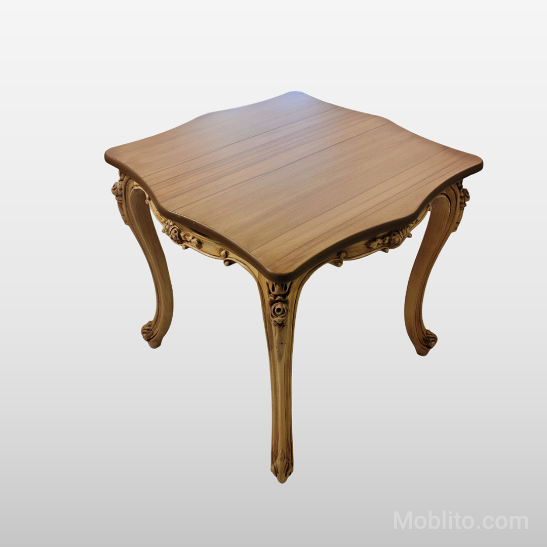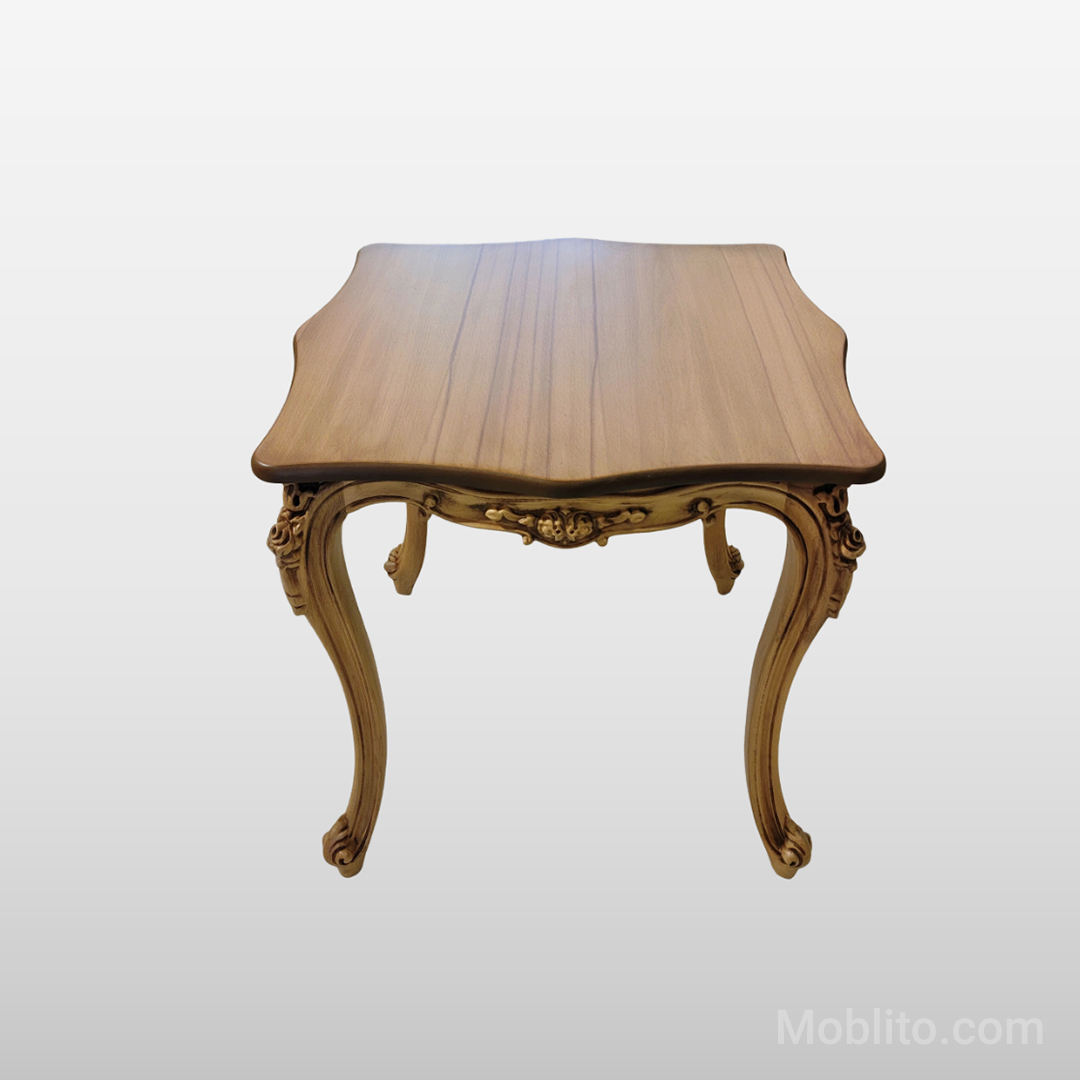 میز مربعی وسط نیز با ابعاد استاندارد و صفحهی مقاوم، فضای کافی برای پذیرایی و استفادهی روزمره را فراهم میکند. صفحهی هر سه میز از ترکیب نئوپان و MDF روکش چوب ساخته شده است؛ ترکیبی که علاوه بر زیبایی، مانع از تغییر شکل صفحهها در طول زمان میشود. طراحی صفحهها با دستگاههای CNC پیشرفته انجام شده تا ظرافت و دقت در تمام جزئیات رعایت شود.