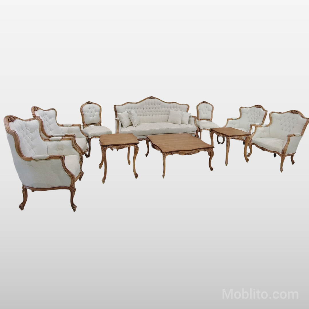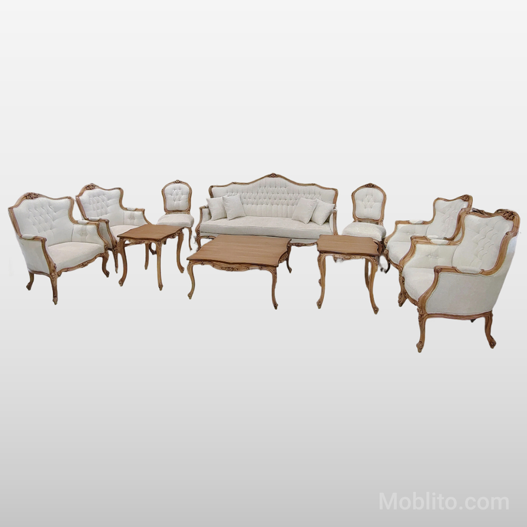 مبل نئوکلاسیک لورنزو در حالت پیشفرض بهصورت یک ست ۹ نفره ارائه میشود که شامل موارد زیر است: