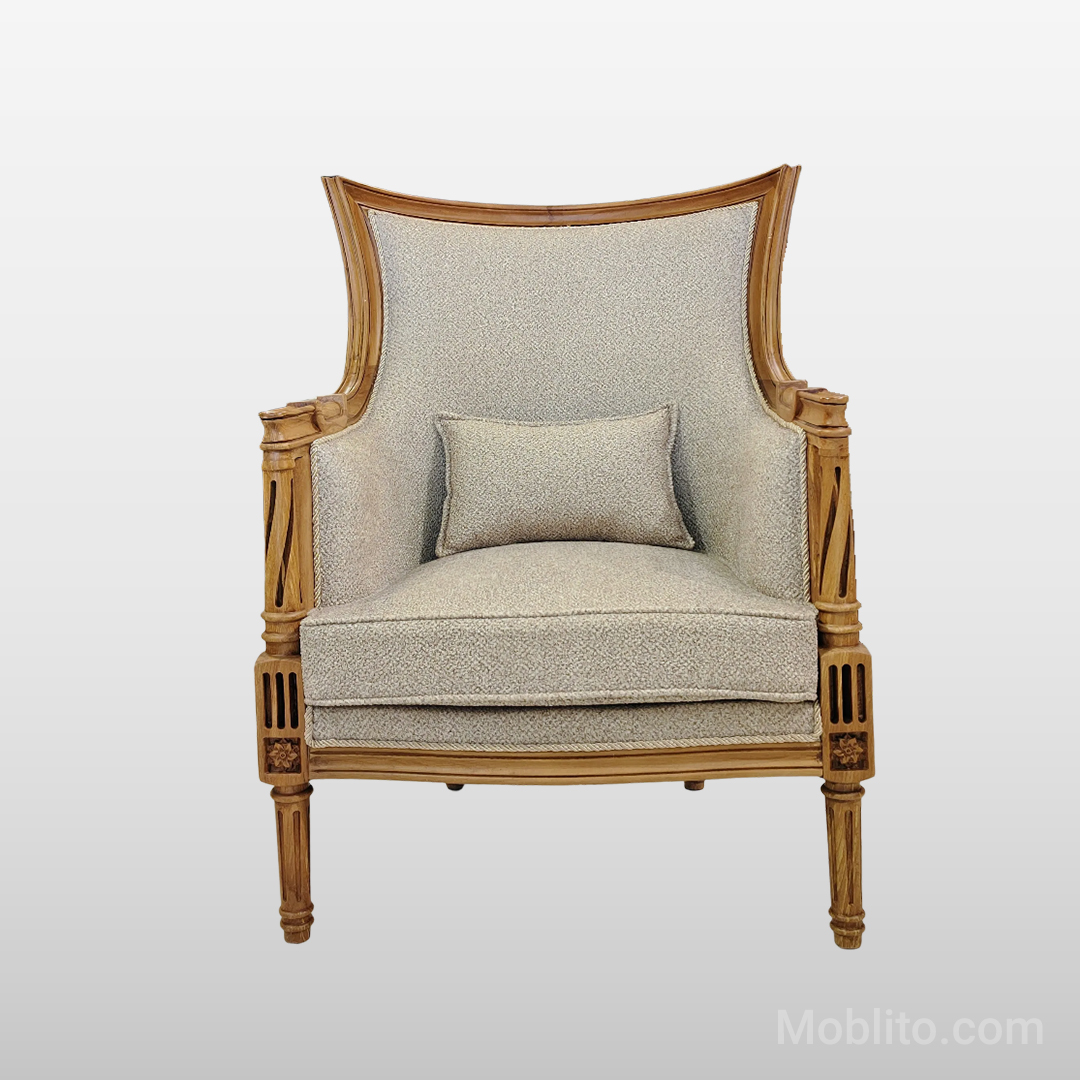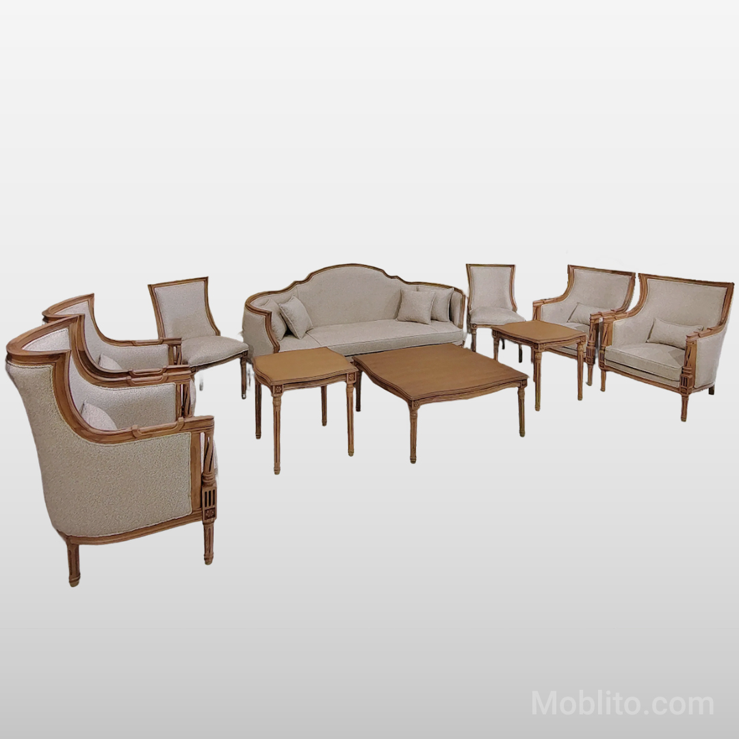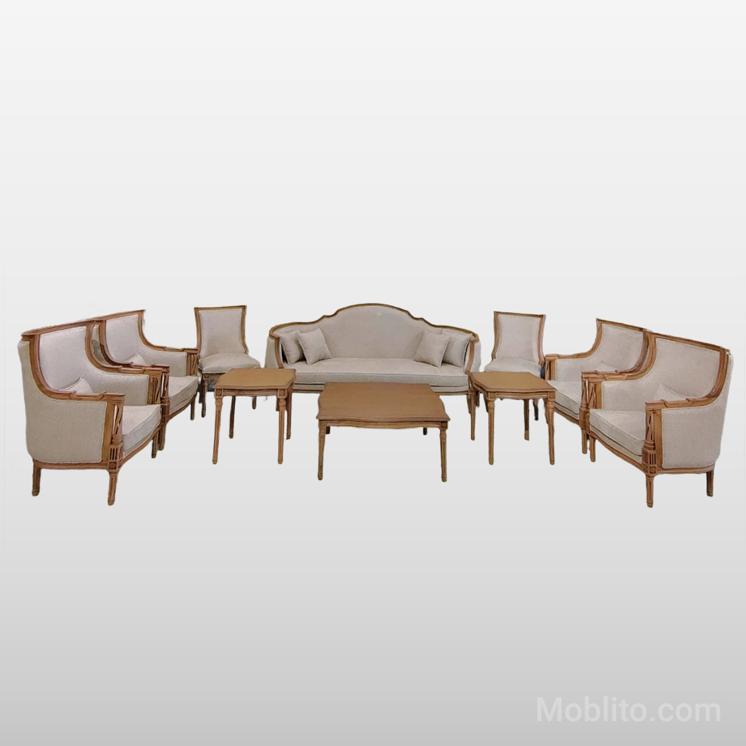 مهمترین ویژگی ظاهری، پایههای خراطی شده و منبتکاریهای ظریف است. این هنر دست بر روی تاج پایین و پایههای تمامی قطعات – کاناپه، مبلهای تکنفره، صندلیهای میزبان و میزها – اجرا شده است. این خطوط منحنی و طرحهای حکاکی شده، همان المانهای کلاسیکی هستند که سبک نئوکلاسیک را تعریف میکنند و به فضای شما شخصیت میبخشند.