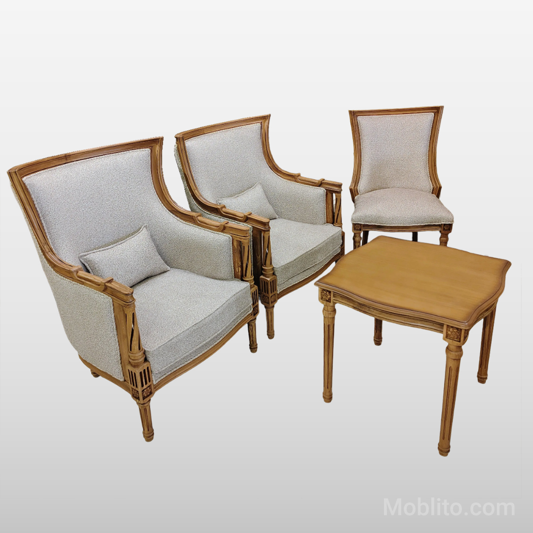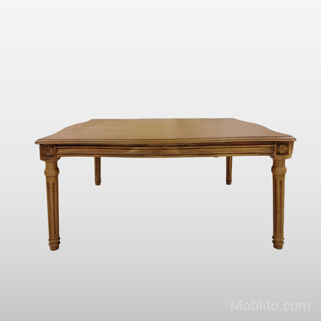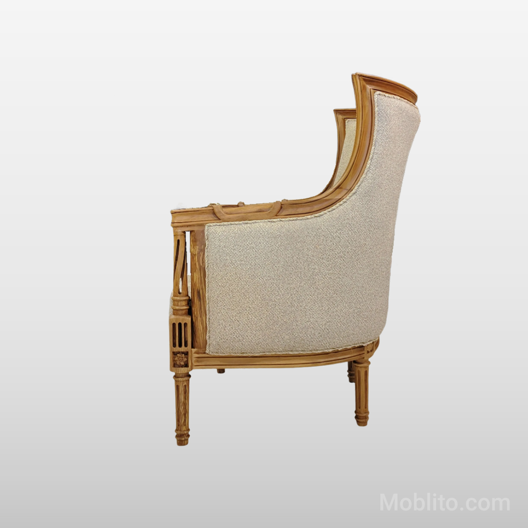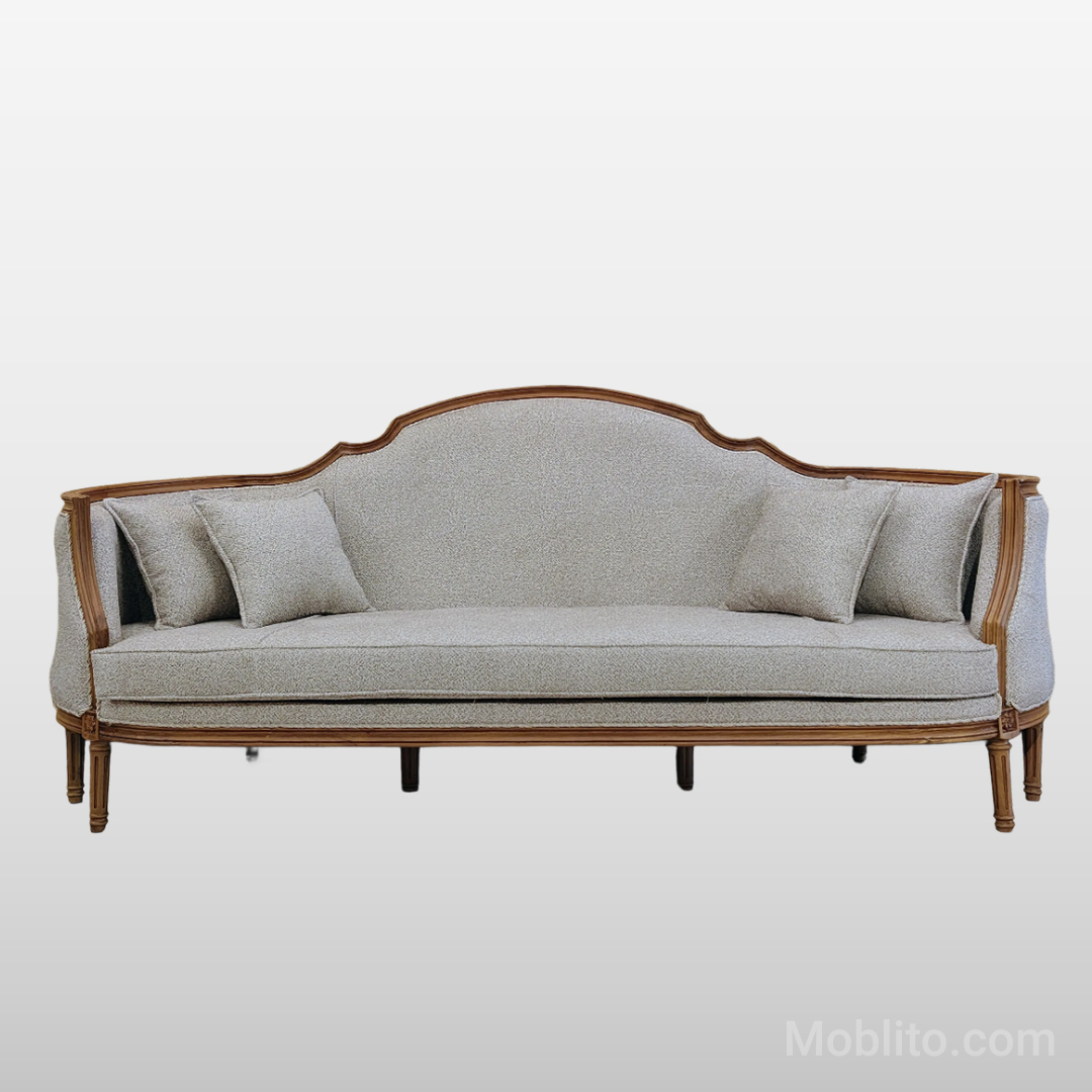 مهمترین ویژگی ظاهری، پایههای خراطی شده و منبتکاریهای ظریف است. این هنر دست بر روی تاج پایین و پایههای تمامی قطعات – کاناپه، مبلهای تکنفره، صندلیهای میزبان و میزها – اجرا شده است. این خطوط منحنی و طرحهای حکاکی شده، همان المانهای کلاسیکی هستند که سبک نئوکلاسیک را تعریف میکنند و به فضای شما شخصیت میبخشند.