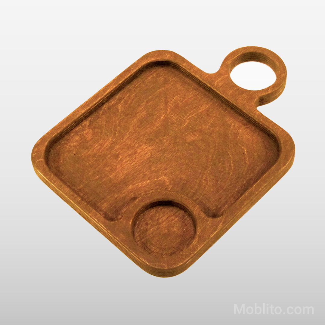 فرم مربع با گوشههای ۹۰ درجه، از نظر ساختاری چالشبرانگیزتر از دایره است، زیرا تمرکز تنش در گوشهها بیشتر است. ما برای ساخت این سینی از تخته چوب پلی وود سوزا روسی استفاده کردهایم. چرا این انتخاب حیاتی است؟